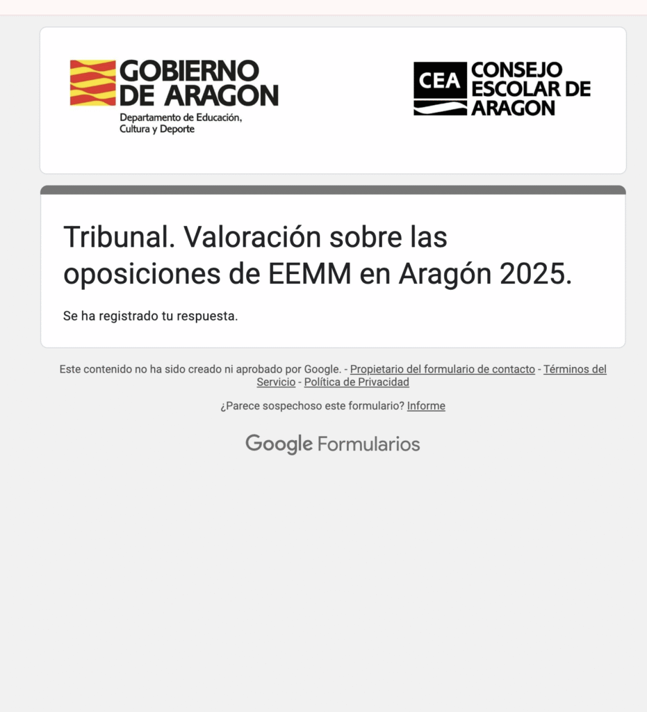El Departamento de Educación ha lanzado una encuesta para recoger impresiones, tanto de opositores como de miembros de tribunal. No sé si servirá de algo, pero al menos he tenido la oportunidad de expresar lo que muchos sentimos: que esto no puede volver a repetirse así.